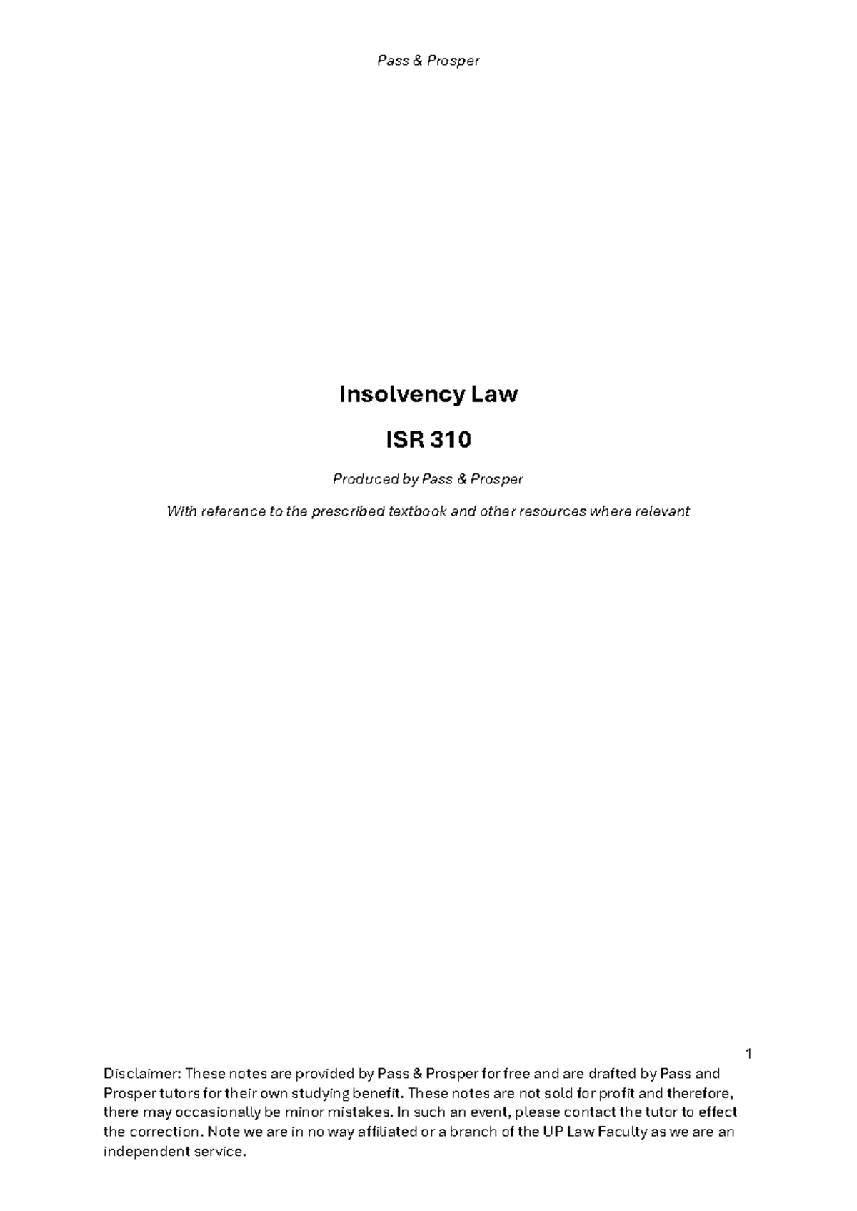 ISR 310 Final Exam Notes: Understanding Insolvency Law Concepts - Studocu