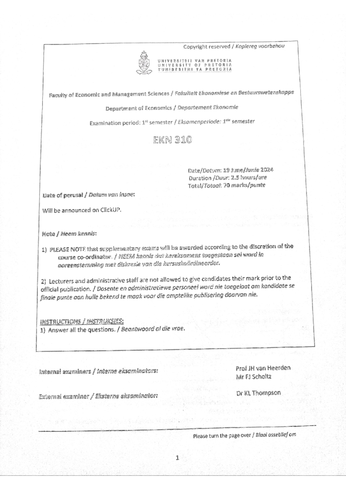 310 2021 exam and memo - EKN 310 July 2021 Exam Section B – Analysis ...