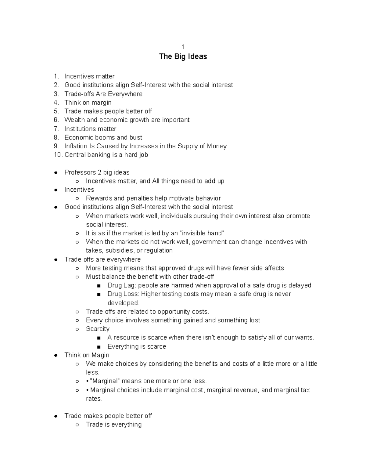 Macro Final Exam Review Notes: Key Concepts and Chapters 2-20 - 1 The ...