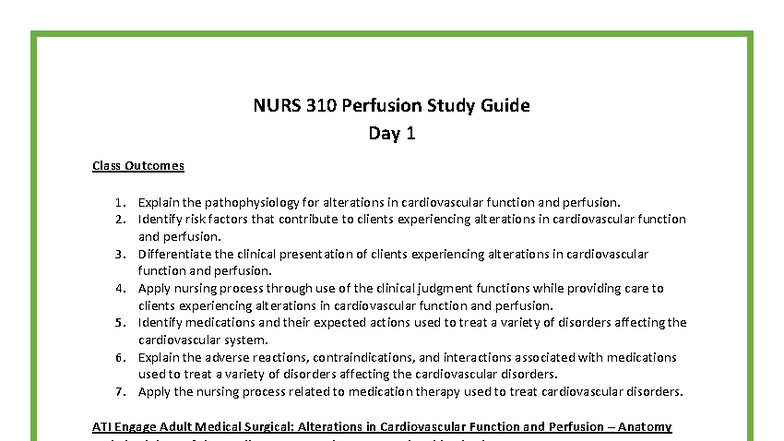 NURS 310 Final Exam Study Guide: Cardiovascular Function & Perfusion ...