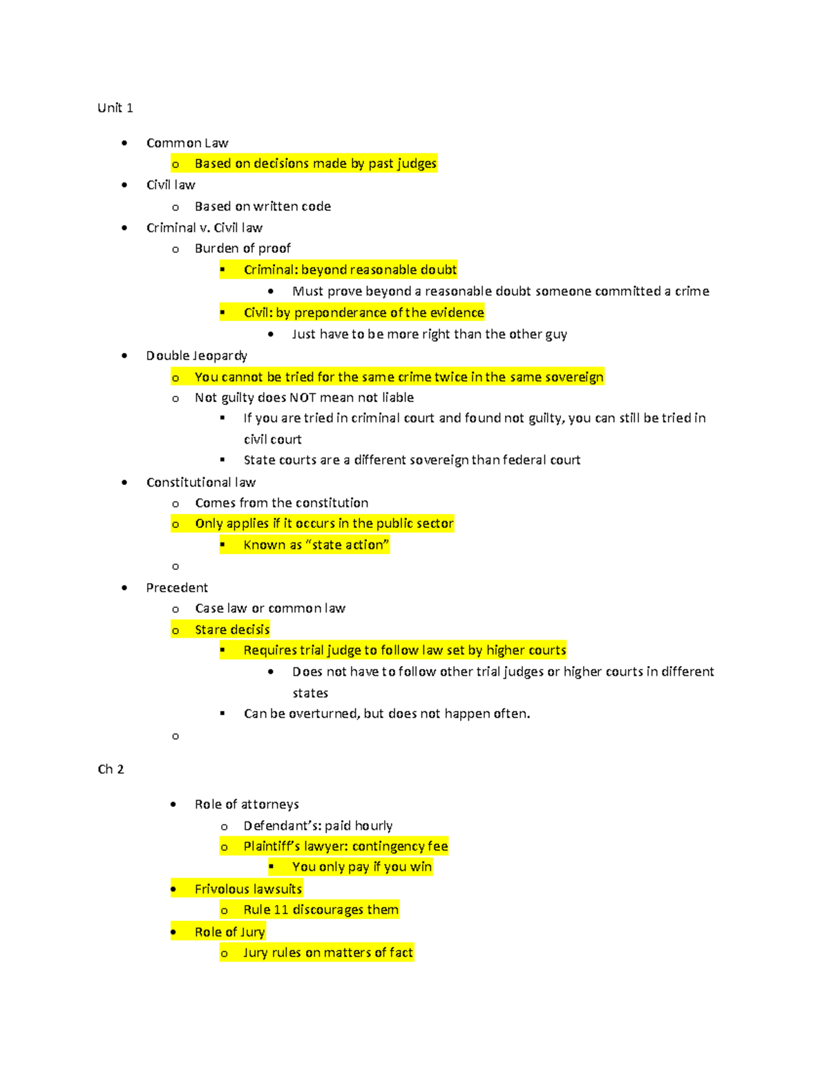 BLAW Final Exam Review Notes: Key Concepts and Case Law Overview - Studocu