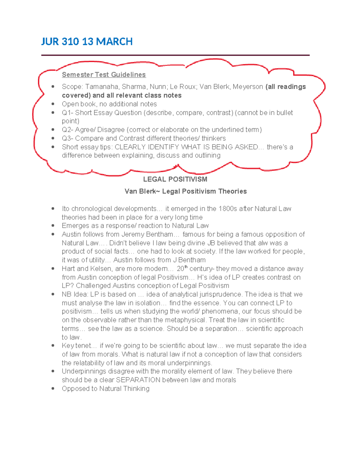JUR 310 Final Exam Guidelines: Legal Positivism vs. Natural Law - Studocu