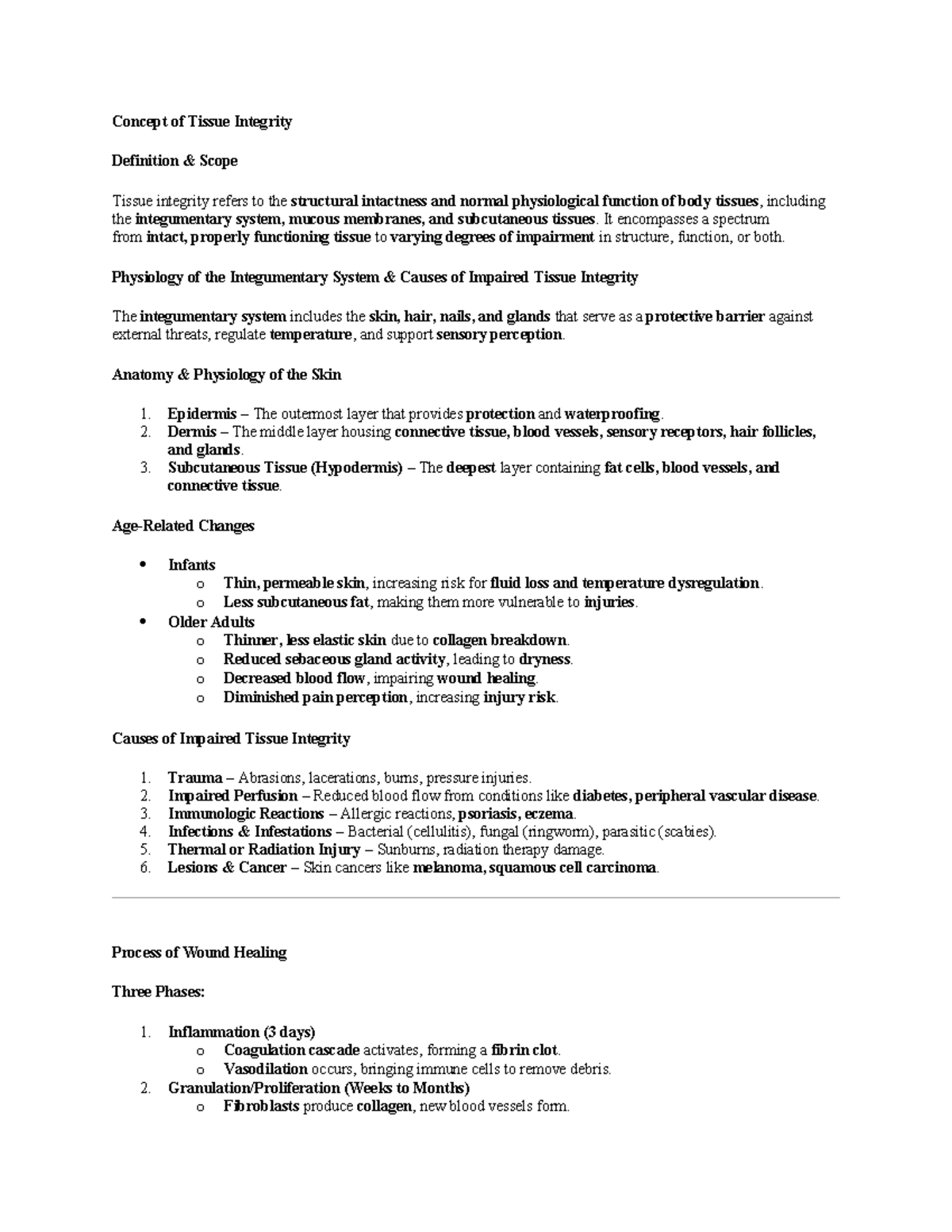 NUR 310 Final Exam Study Guide: Tissue Integrity & Wound Management ...