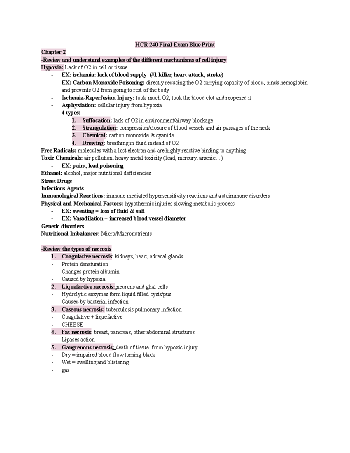 HCR 240 Final Exam Review Notes: Key Concepts and Mechanisms - HCR 240 ...