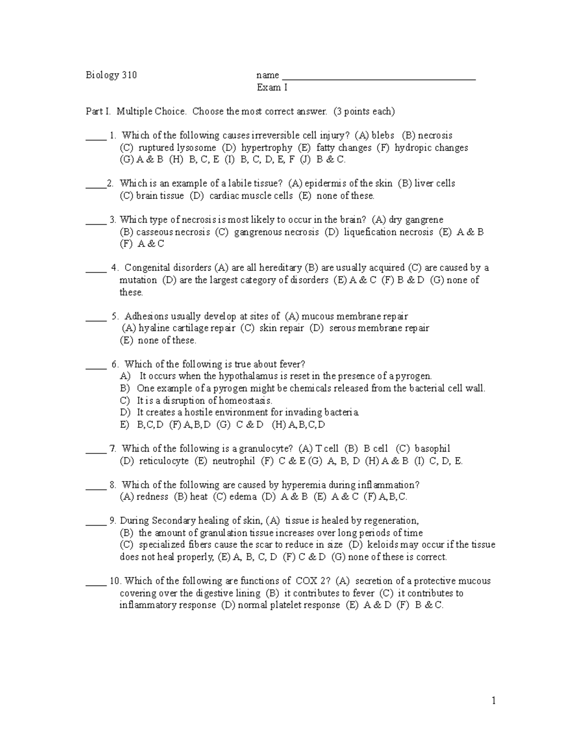 Biology 310 Exam I Review: Key Concepts and Short Answer Insights - Studocu