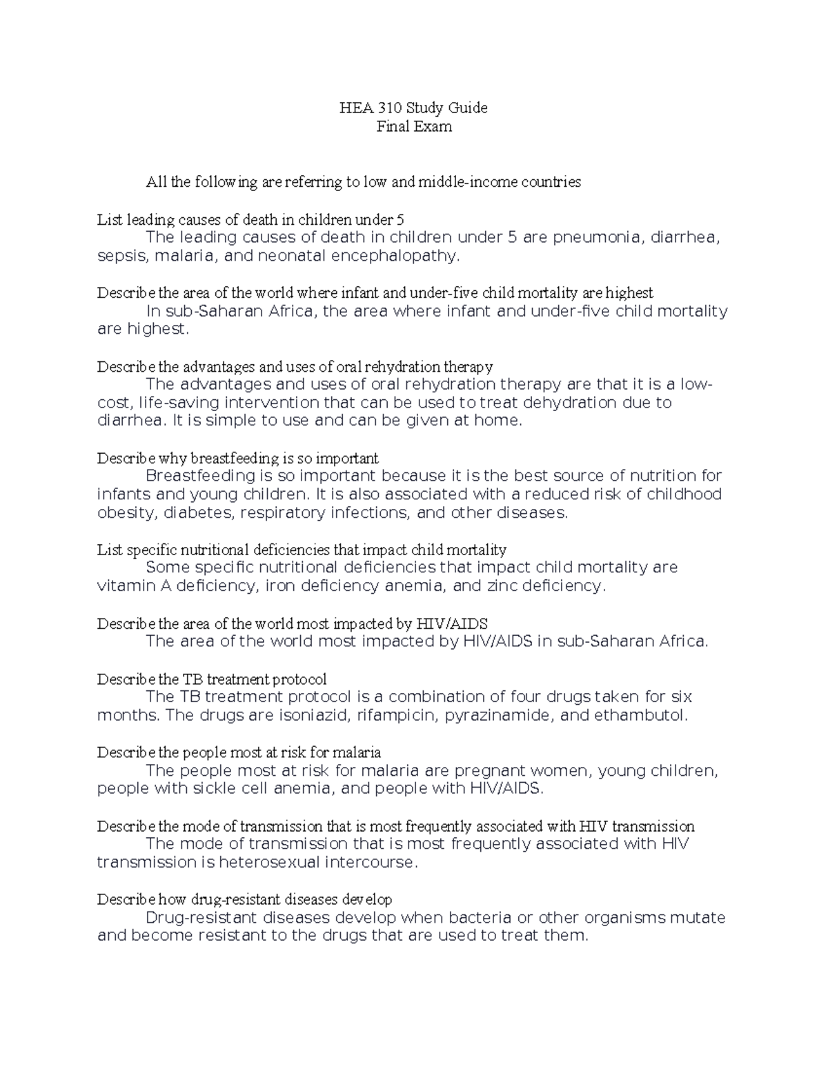 HEA 310 Final Exam Study Guide: Key Topics in Child Health - Studocu