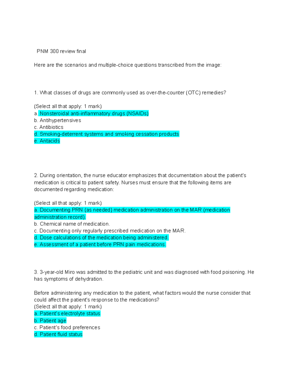PNM 300 Final Exam Review Notes: Key Scenarios & Questions - Studocu