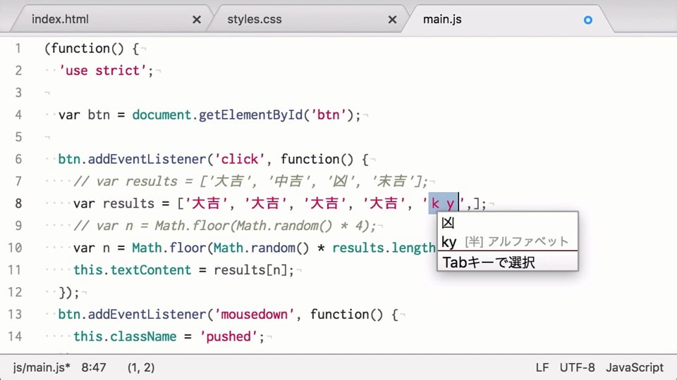 【旧版】JavaScriptでおみくじを作ろう (全8回) - プログラミングならドットインストール