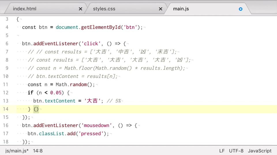 #08 確率を操作してみよう | 【旧版】JavaScriptでおみくじを作ろう - プログラミングならドットインストール