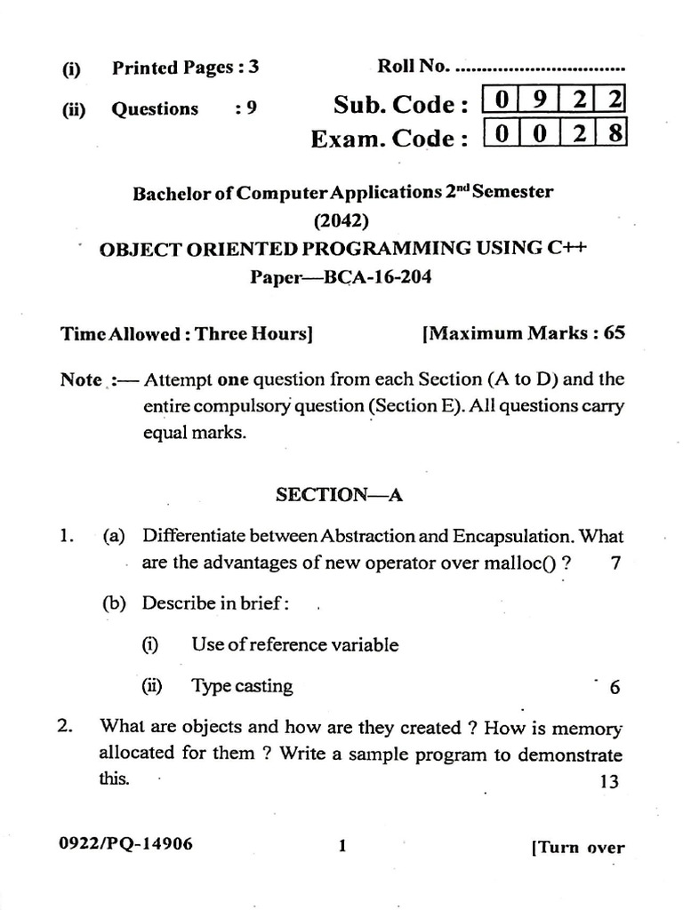 Bca 2 Sem Object Modeling and CPP Programming 21 C 2017 | PDF