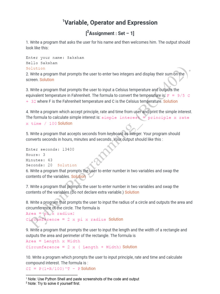 Based on this image's title: “Assignments On Variables Python Programming BCC402 | PDF | Area ...”