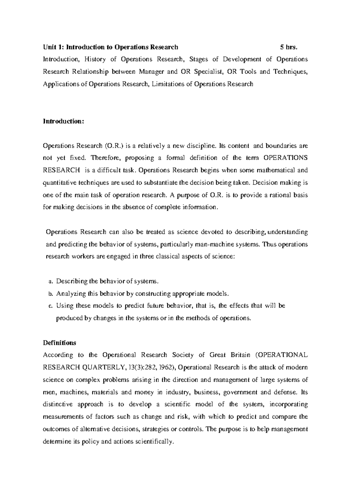 Unit 1: Intro to Operations Research - Concepts & Applications - Studocu