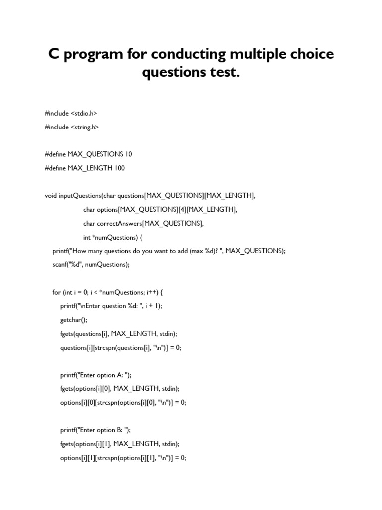 Multiple Choice Questions C Language | PDF | C (Programming Language ...
