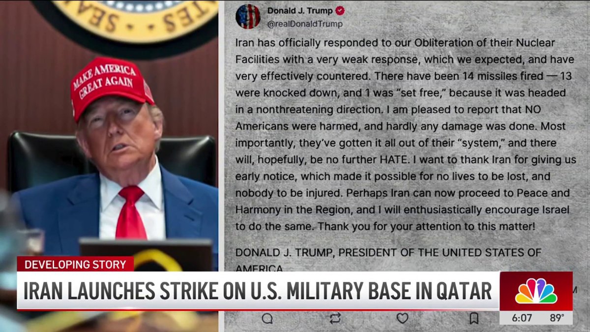 Iran launches strike on U.S. military base in Qatar – NBC New York