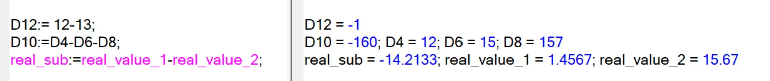 Subtraction arithmetic operator in Mitsubishi PLC structured text