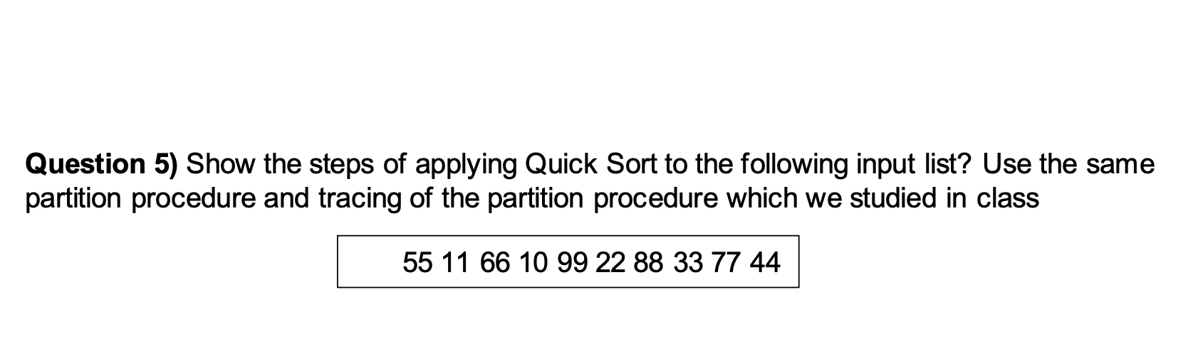 Solved Question 5) Show the steps of applying Quick Sort to | Chegg.com