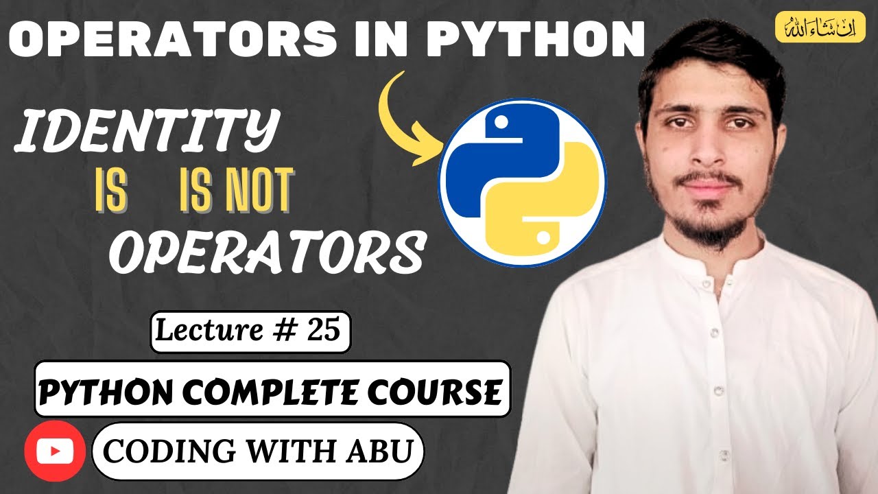 Based on this image's title: “Identity Operators in Python Programming - YouTube”