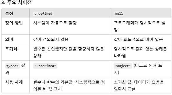 JavaScript에서 지원하는 데이터 타입(기본형과 참조형)을 조사하고 각각의 특징과 차이점을 정리하세요.