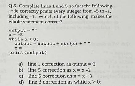 Solved Q.5. Complete lines 1 and 5 so that the following | Chegg.com