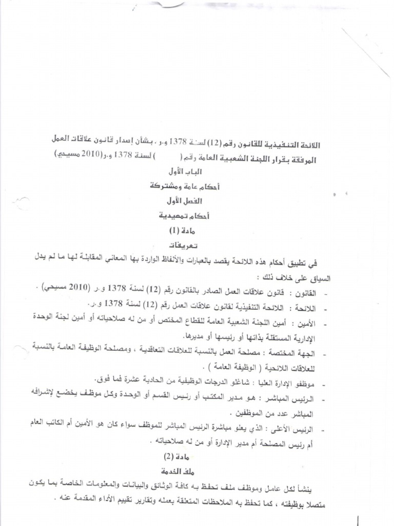 اللائحة التنفيذية للقانون رقم 12 لسنة 2010 بشأن علاقات العمل PDF | PDF
