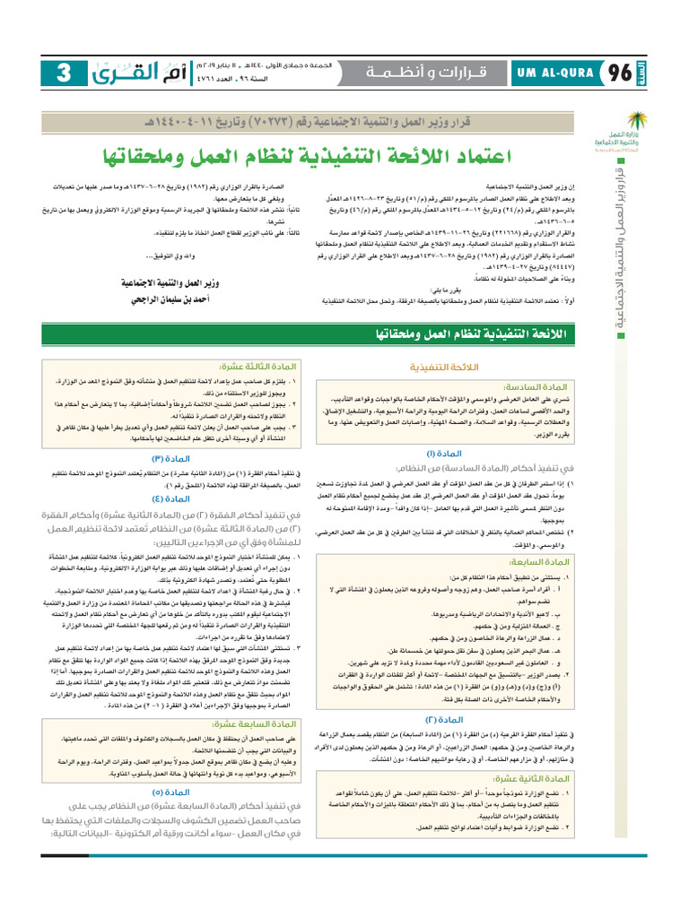 "أم القرى" تنشر قرار تعديل اللائحة التنفيذية لنظام العمل في السعودية ...