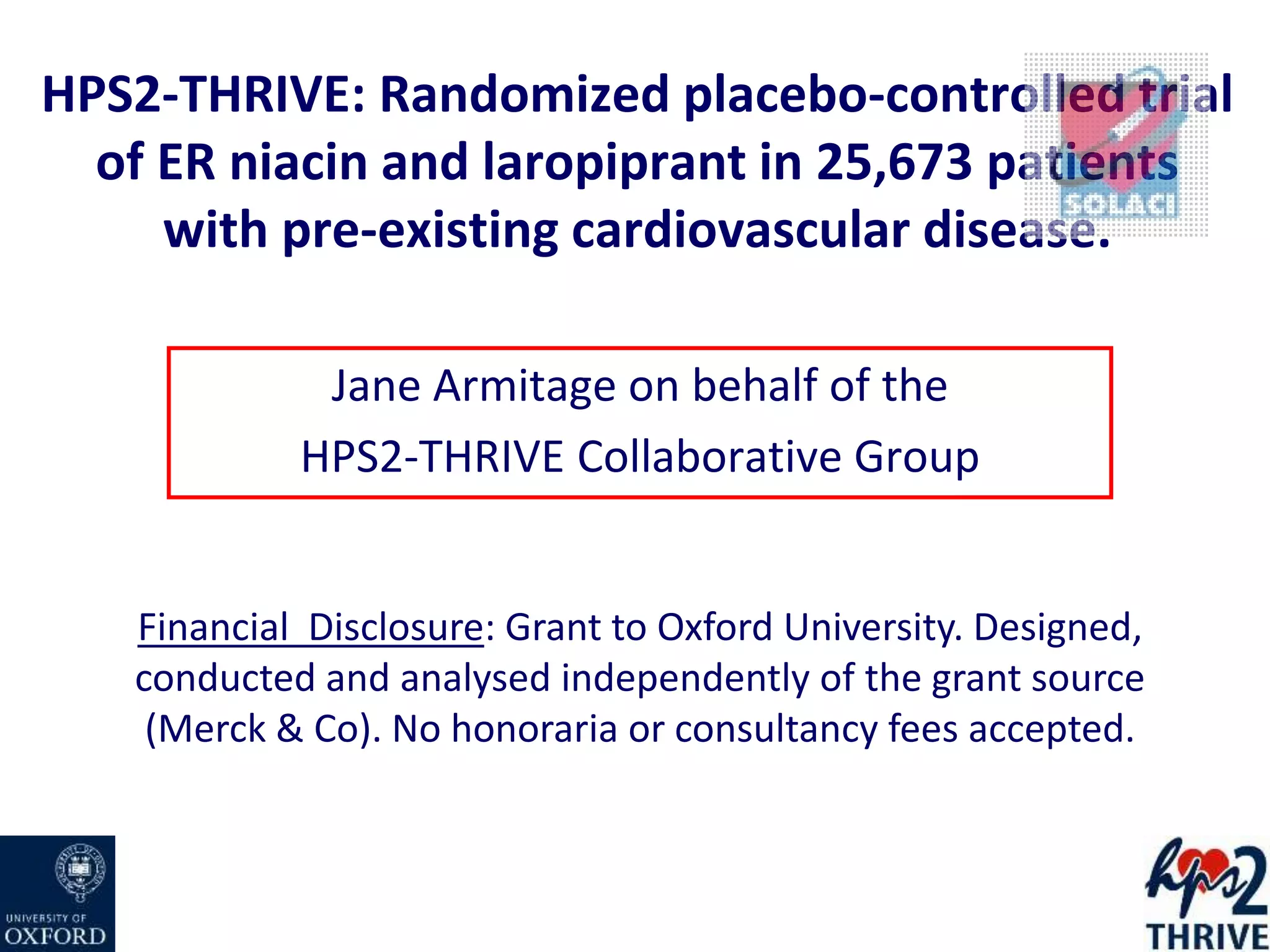 THRIVE: La niacina / laropiprant de liberación prolongada. Beneficio ...