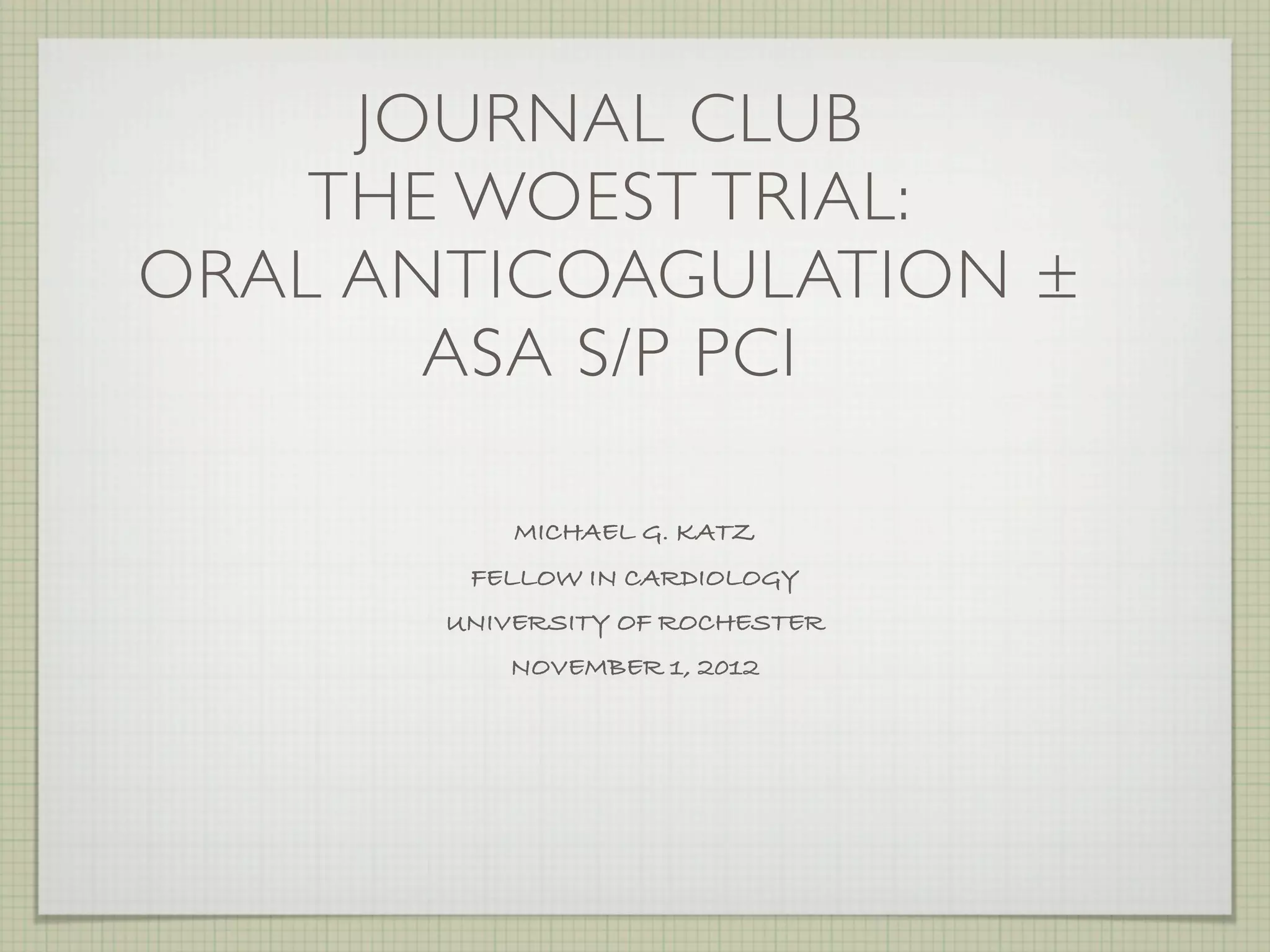 Journal club 11 1-2012 woest trial | KEY | Heart and Cardiovascular ...
