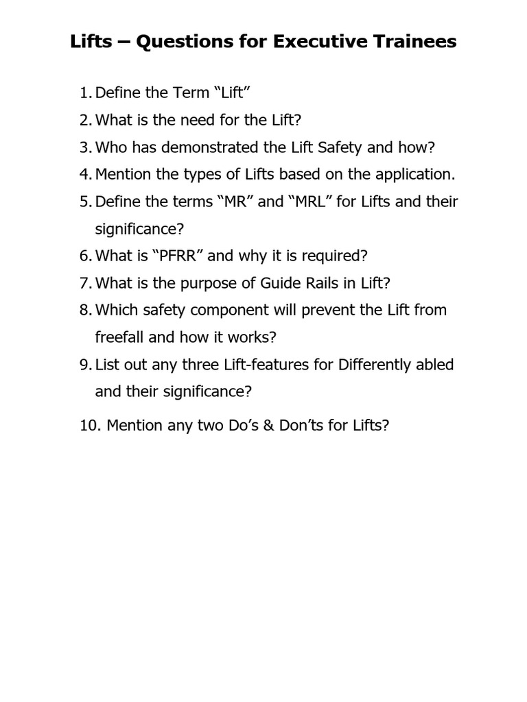 Lifts QA | PDF