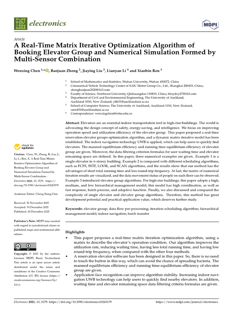 Electronics 10 03179 v2 | PDF | Mathematical Optimization | Elevator