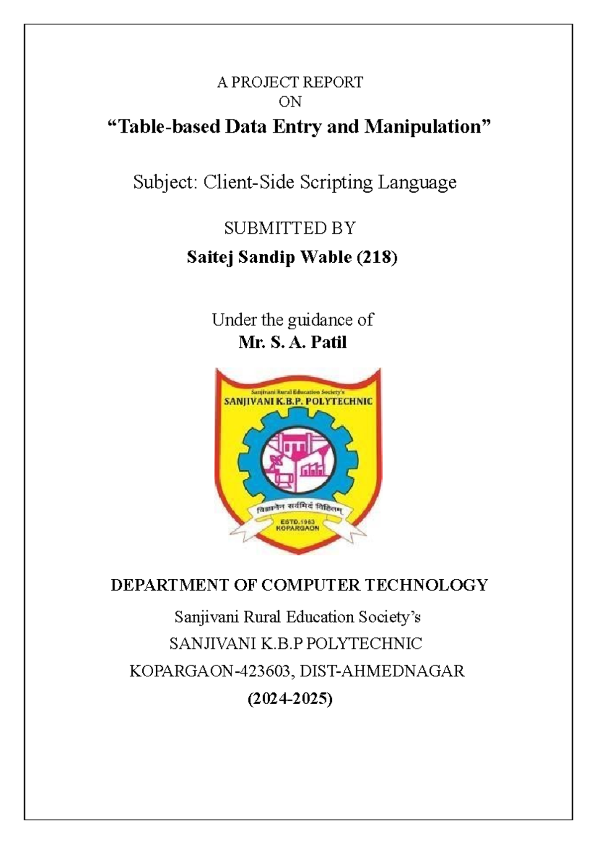 Cssmp - asd - ####### A PROJECT REPORT ####### ON “Table-based Data ...