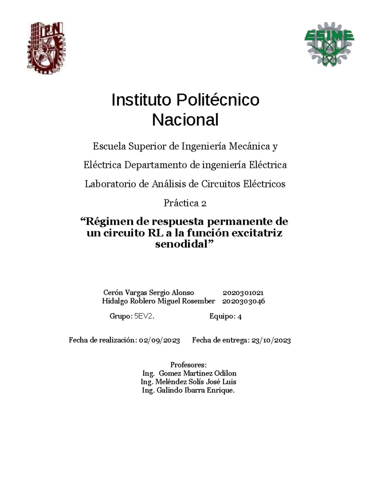 Practica 2 Regimen RL equipo 4 5ev2 - Instituto Politécnico Nacional ...