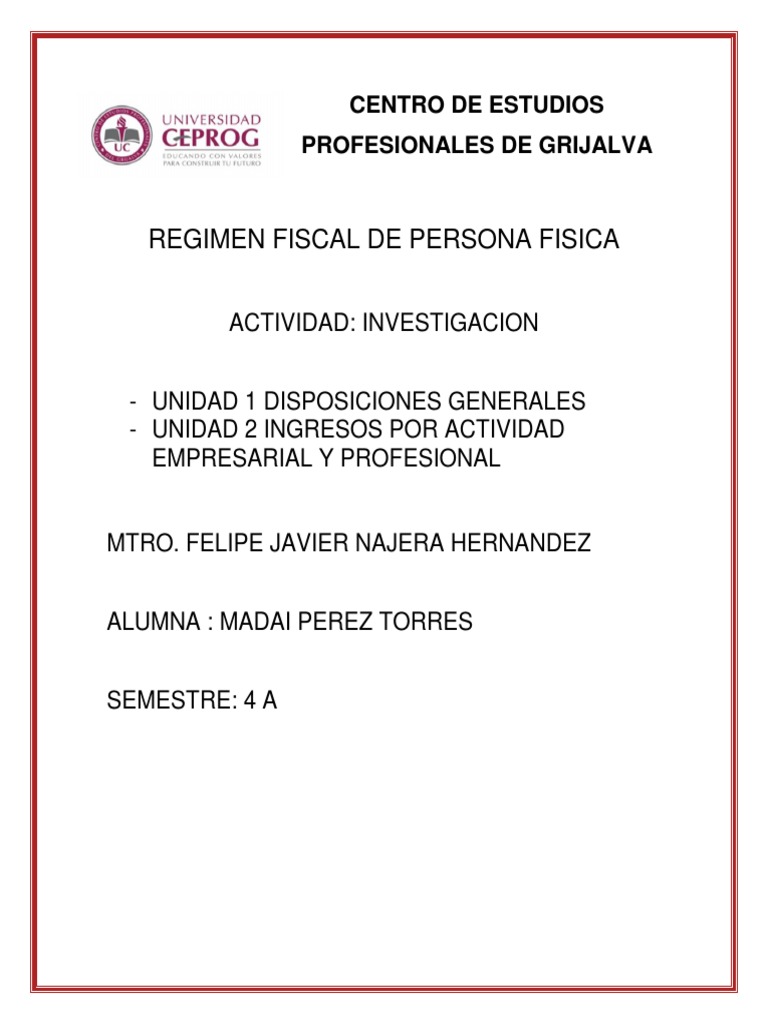 Investigacion Unidad 1 y 2 (Regimen de Persona Fisica) | PDF | Impuesto ...