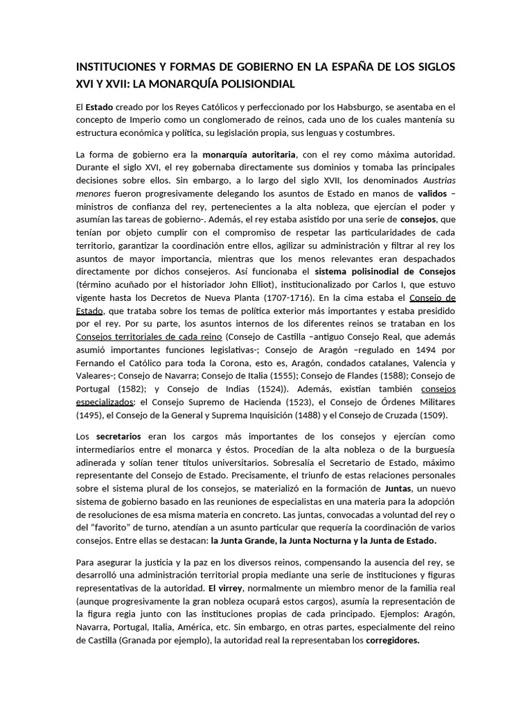 Sistema Polisinodial - Apuntes - Historia Moderna de España I: 1469 ...