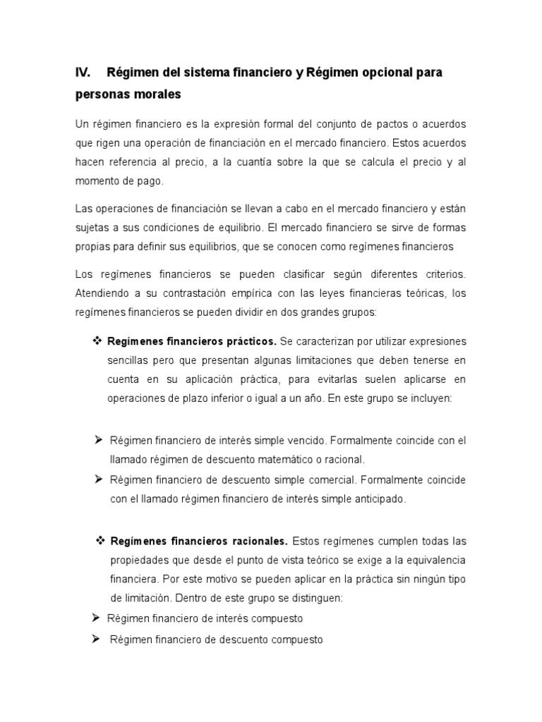 Regimen Del Sistema Financiero y Regimen Opcional para Personas Morales ...