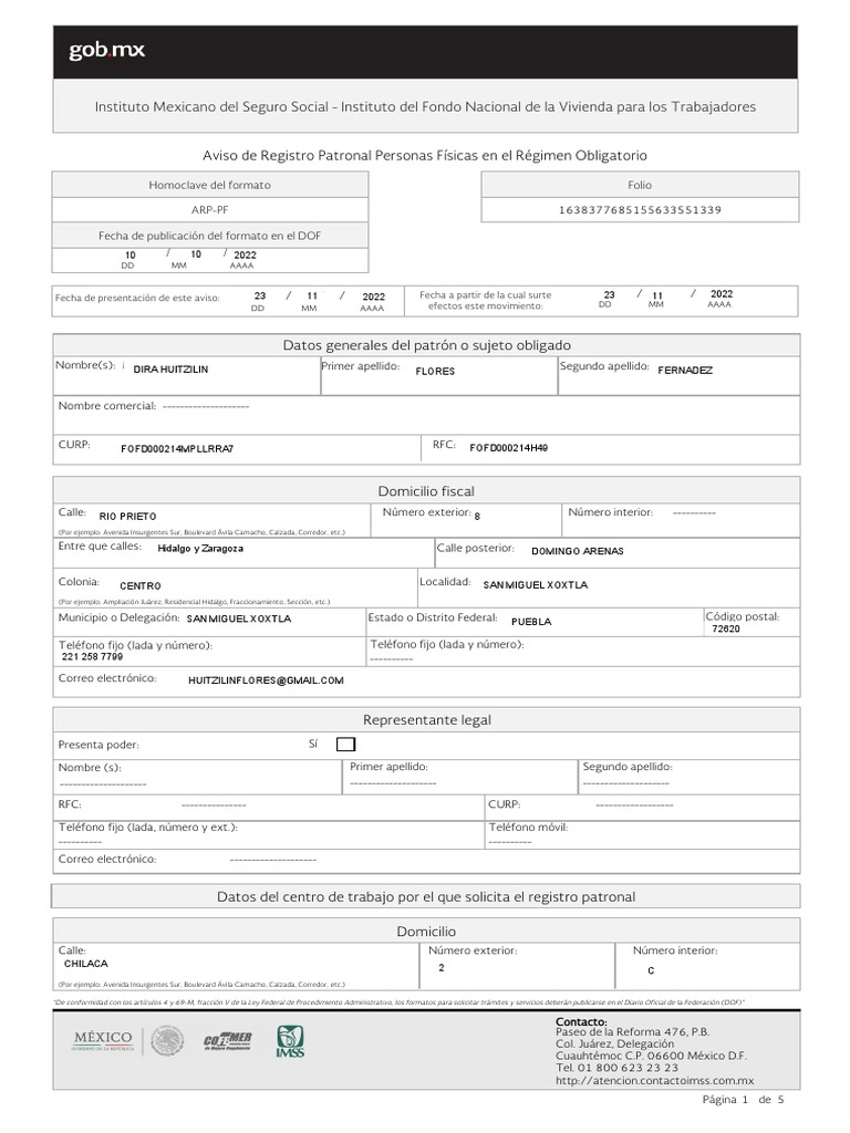 Aviso de Registro Patronal Personas Físicas en El Régimen Obligatorio ...