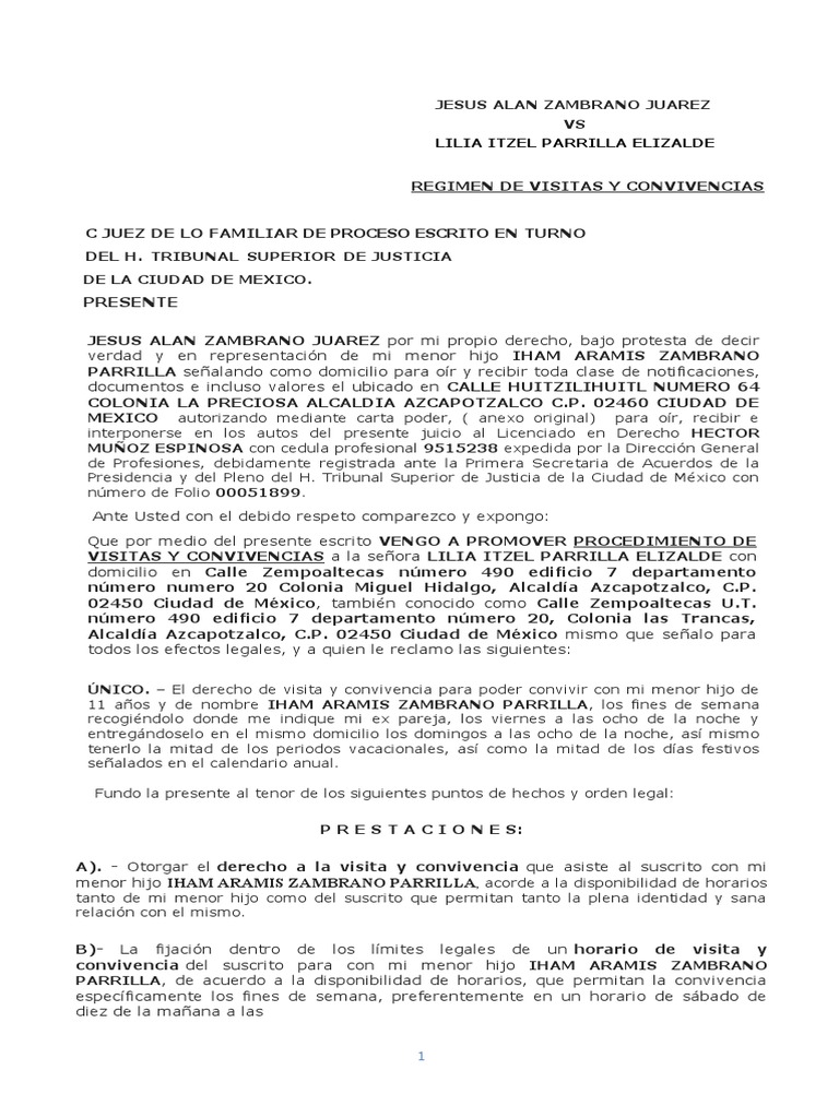 Solicitud de Régimen de Visitas para Hijo | PDF