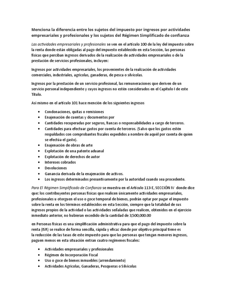 Diferencias entre sujetos fiscales ISR | PDF