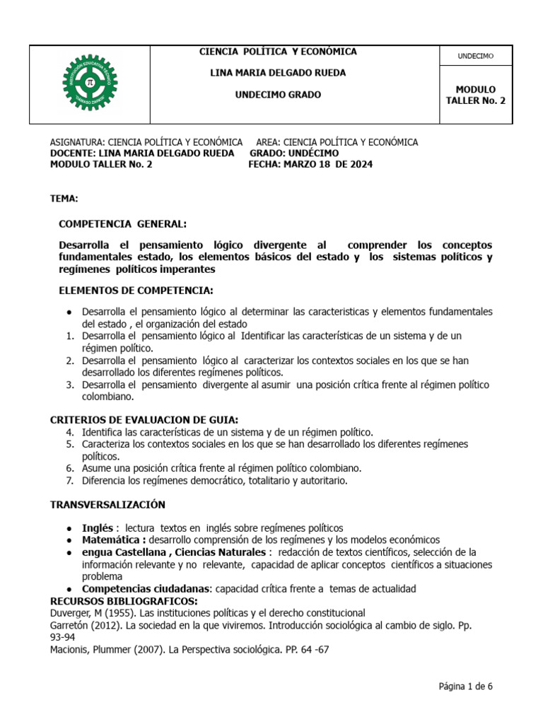 Guia 2 Regimen Politico y Sistema Politico 2024 | PDF | Autoritarismo ...