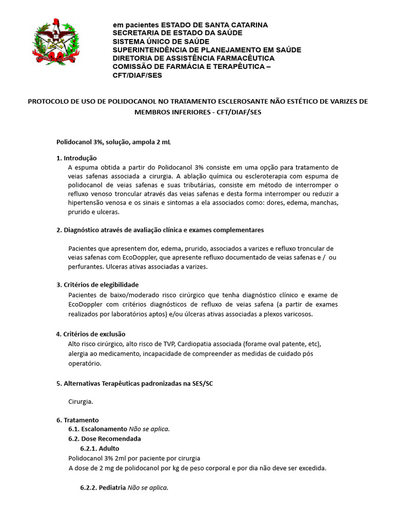 Protocolo de Uso de Polidocanol 3% | PDF | Varizes | Doença do refluxo ...