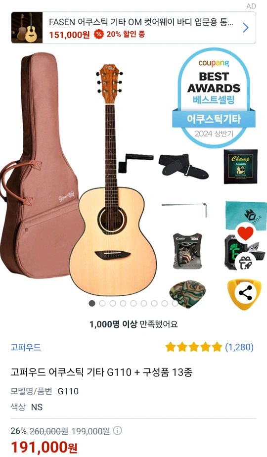 고퍼우드 어쿠스틱 기타 G100 + 구성품 | 기타 중고물품 | 당근 중고거래