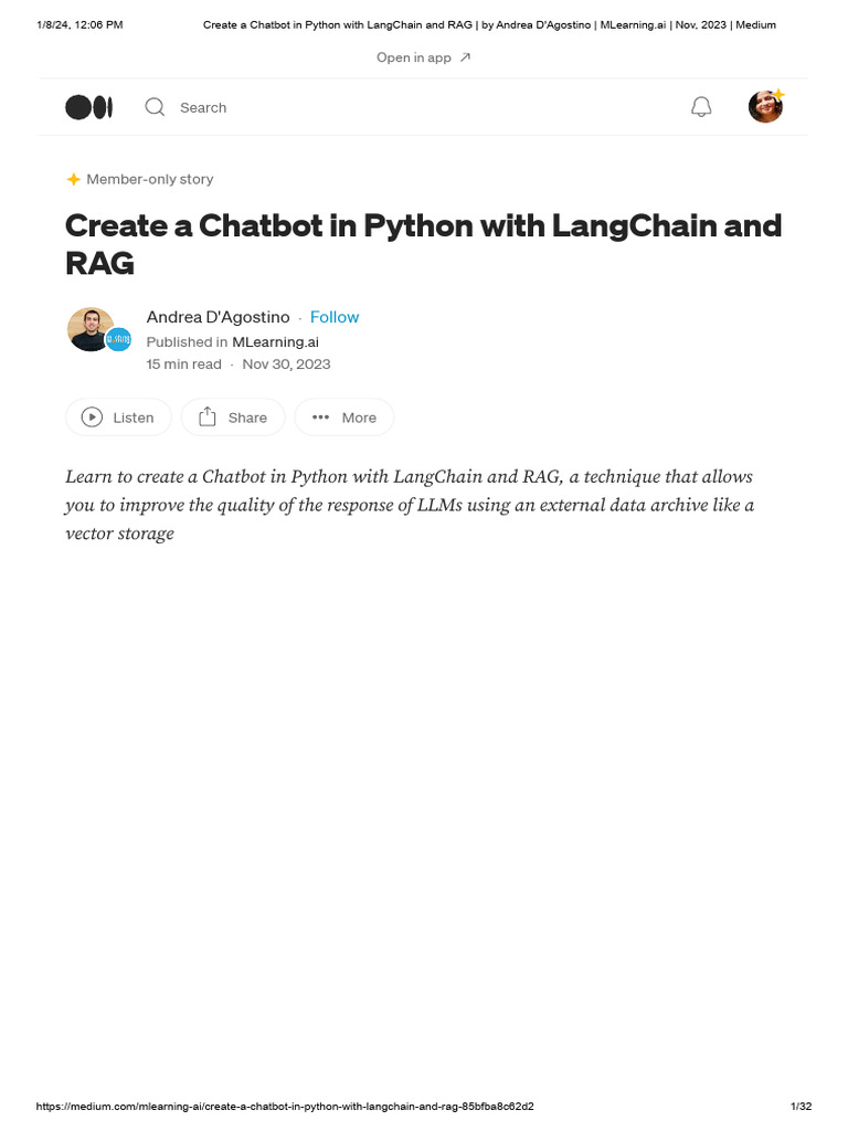 Create A Chatbot in Python With LangChain and RAG - by Andrea D ...