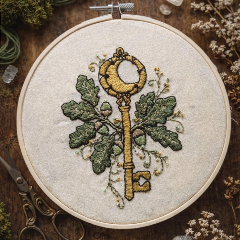 Oak Tree & Key Beginners Embroidery Kit | Hand Stitch a Hoop | Learn ...