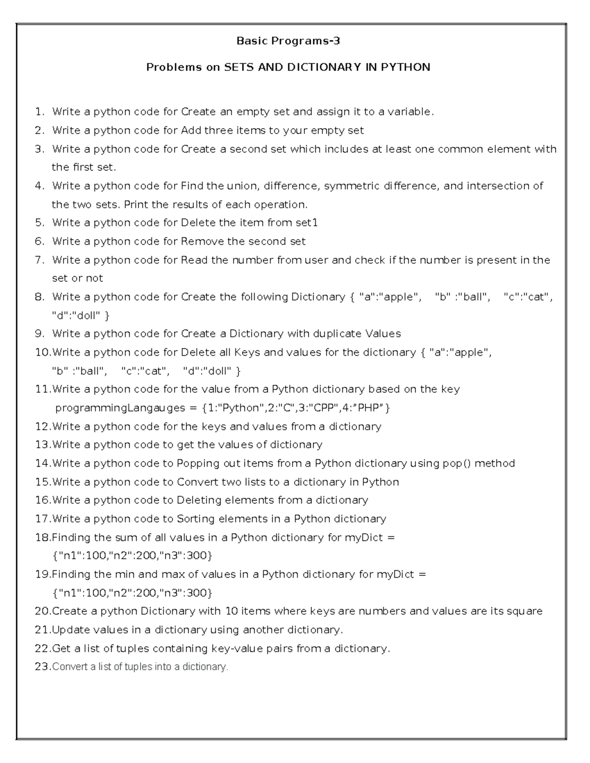 Basic Programs set and dictionary - Basic Programs- Problems on SETS ...
