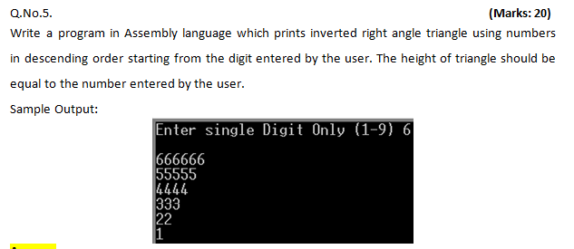 Solved Q.No.5. (Marks:20) Write a program in Assembly | Chegg.com