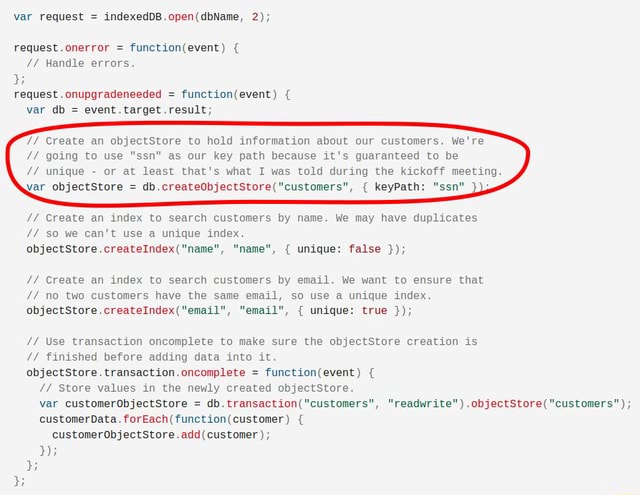 Var request = 2); request.onerror = { Handle errors. hi request ...