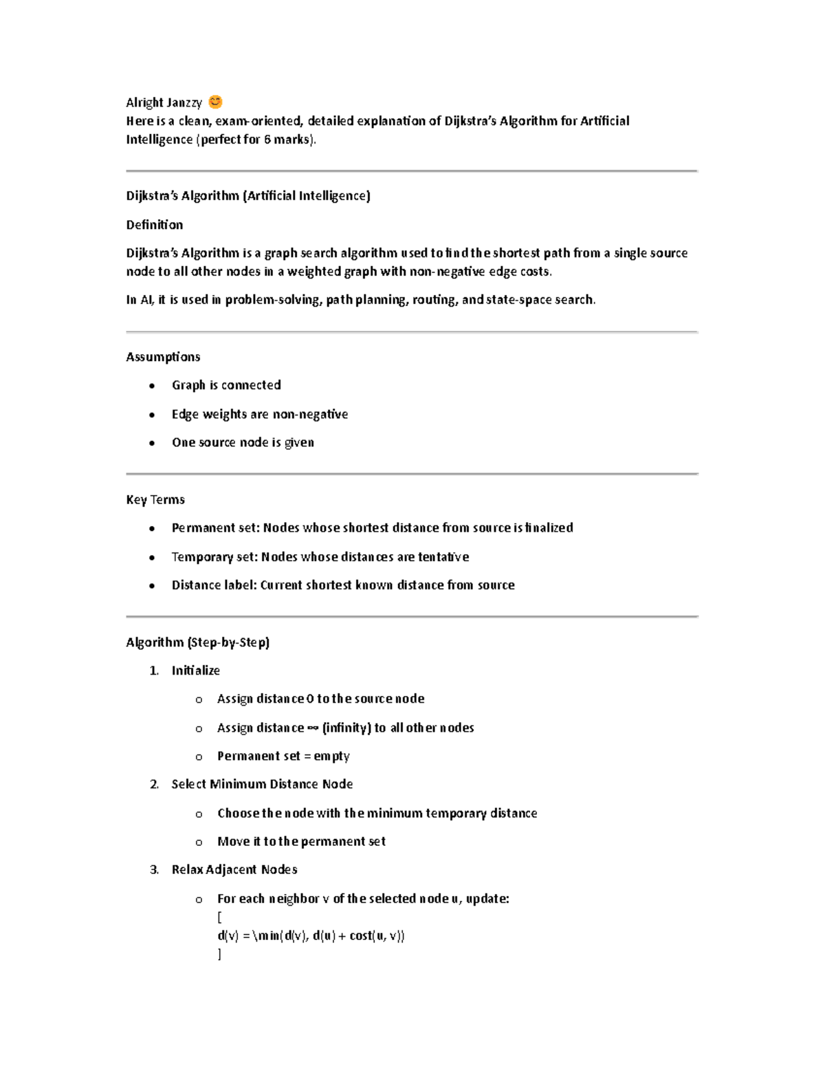 AI 101: Dijkstra's Algorithm Explained for 6 Marks - Studocu