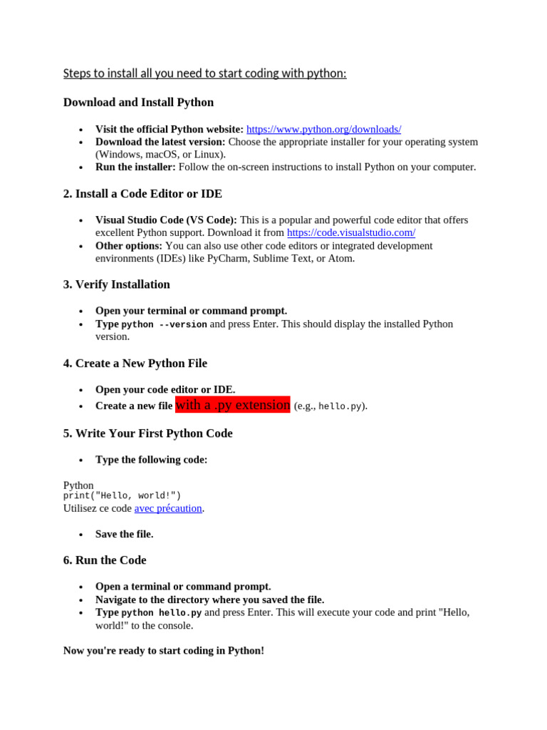 Steps To Install All You Need To Start Coding With Python | PDF