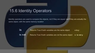 SOLUTION: P 18 identity operators in python python tutorials for ...