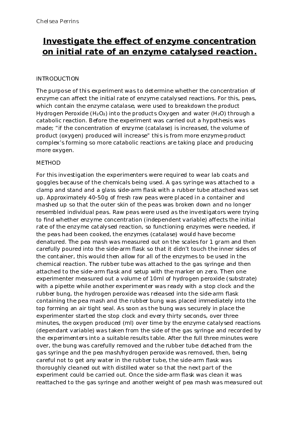 Lab Report - THE EFFECT OF ENZYME CONCENTRATION ON REACTION RATE The ...