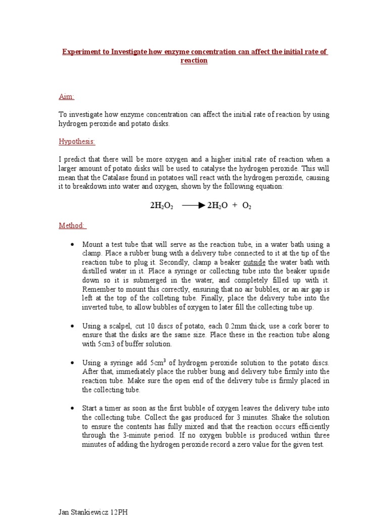 Effect of Enzyme Concentration On Enzyme Action 2.2 | PDF | Catalase ...